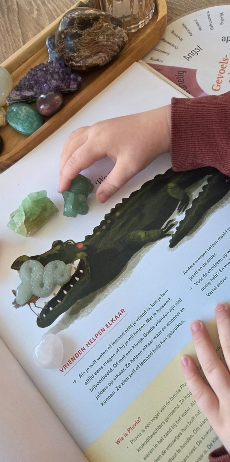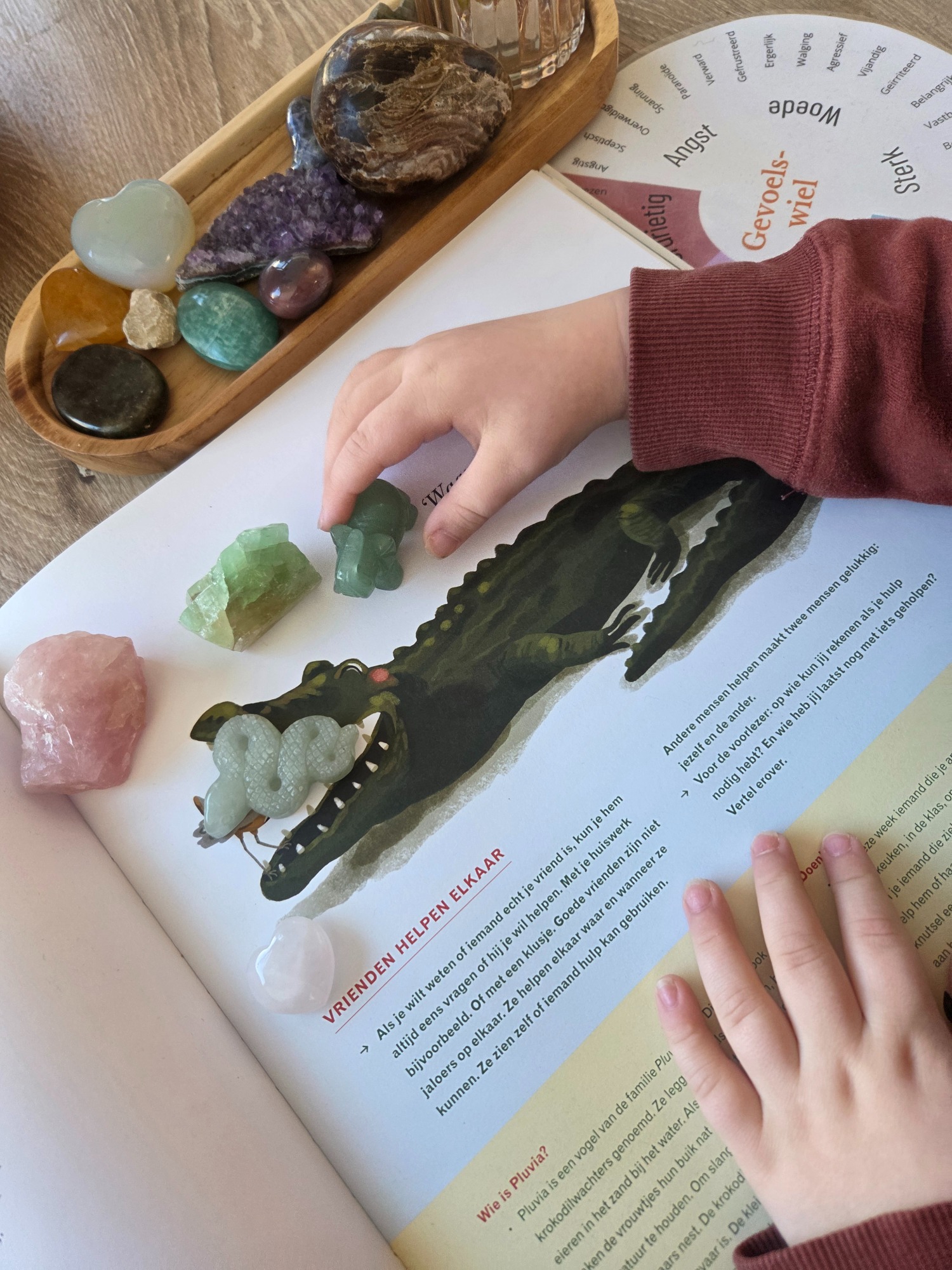 Er is genoeg om mee aan de slag te gaan. Edelstenen kunnen op een bijzondere manier laten zien wat er in je omgaat. Ze hebben kleuren en vormen die ons helpen bij verschillende gevoelens. Sommige stenen geven rust, andere moed of zelfvertrouwen, en weer andere helpen je om beter te begrijpen wat je voelt. Zo kunnen we praten én ontdekken tegelijk, en krijgt jouw verhaal een tastbare, kleurrijke vorm.